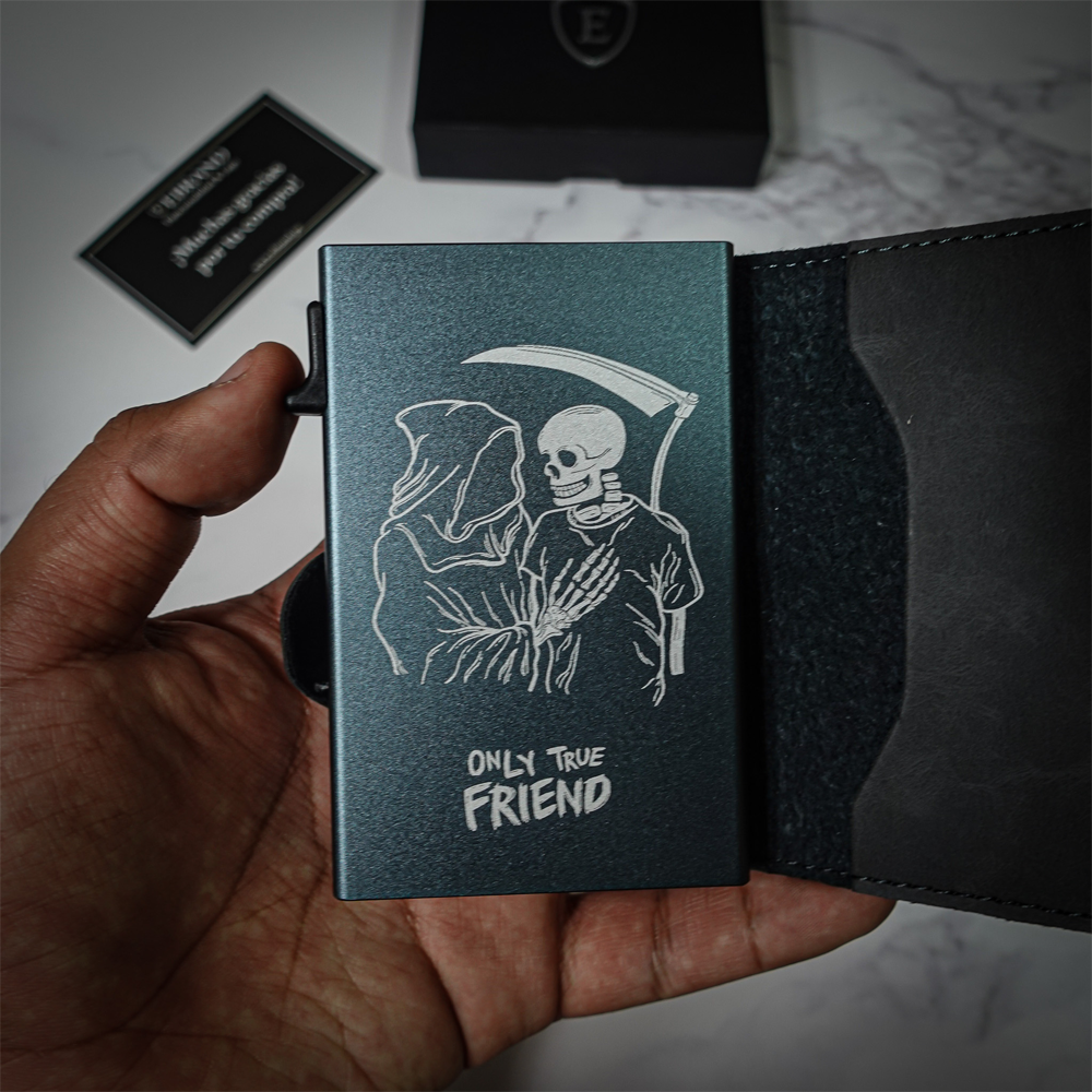 - Características : Case de aluminio con mecanismo de apertura pop-up, para que puedas acceder a tus tarjetas con un solo botón. Tecnología RFID Blocking, para proteger tus tarjetas bloqueando cualquier señal inalámbrica. Billeteras amigables con el medio ambiente.