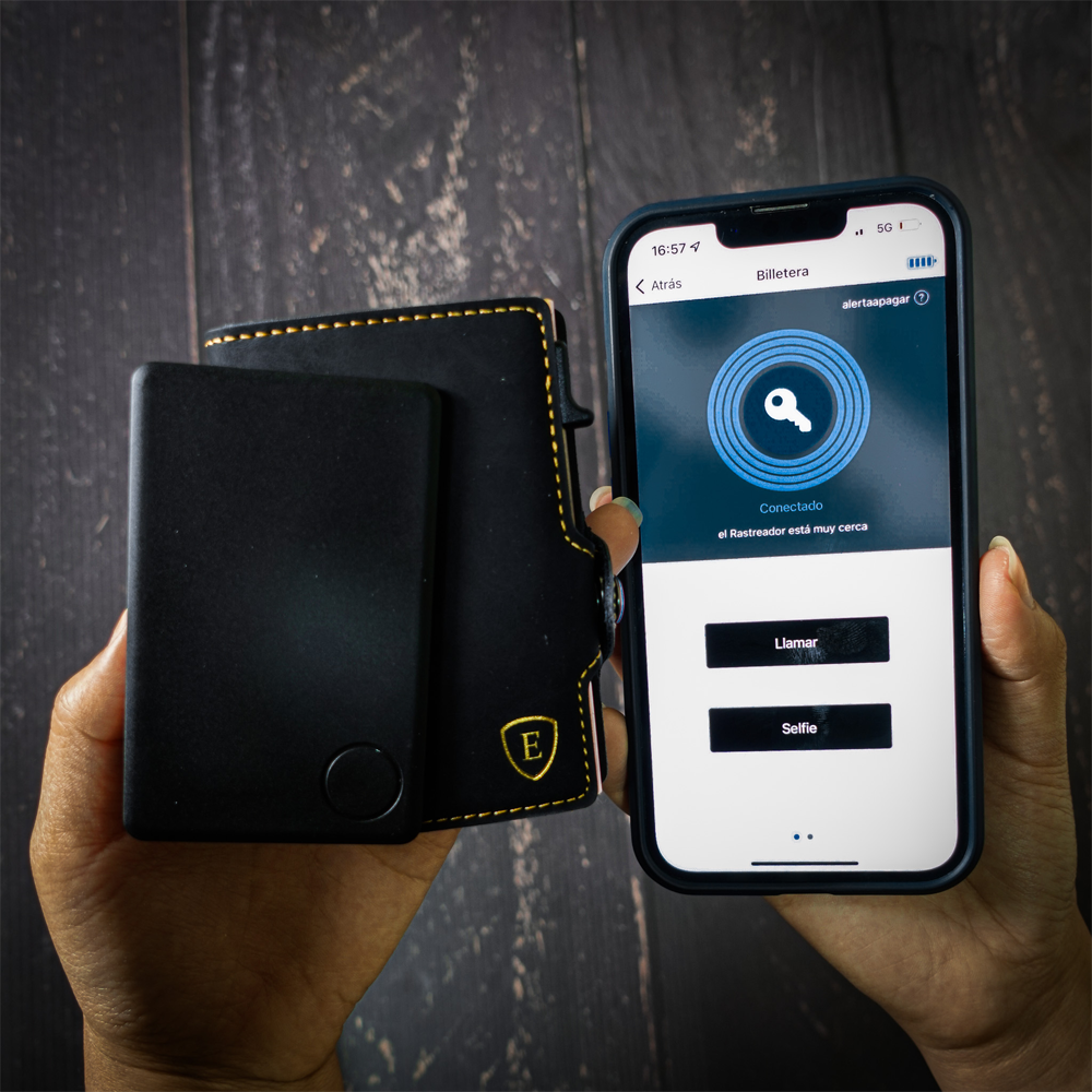 Este modelo cuenta con tecnología RFID anti-clonación que impide la clonación de tarjetas a través de ondas de radio. Agrega un Smart Card a tu compra y obtén la posibilidad de localizar tu billetera y emitir un sonido cuando se encuentre dentro de tu rango de bluetooth.