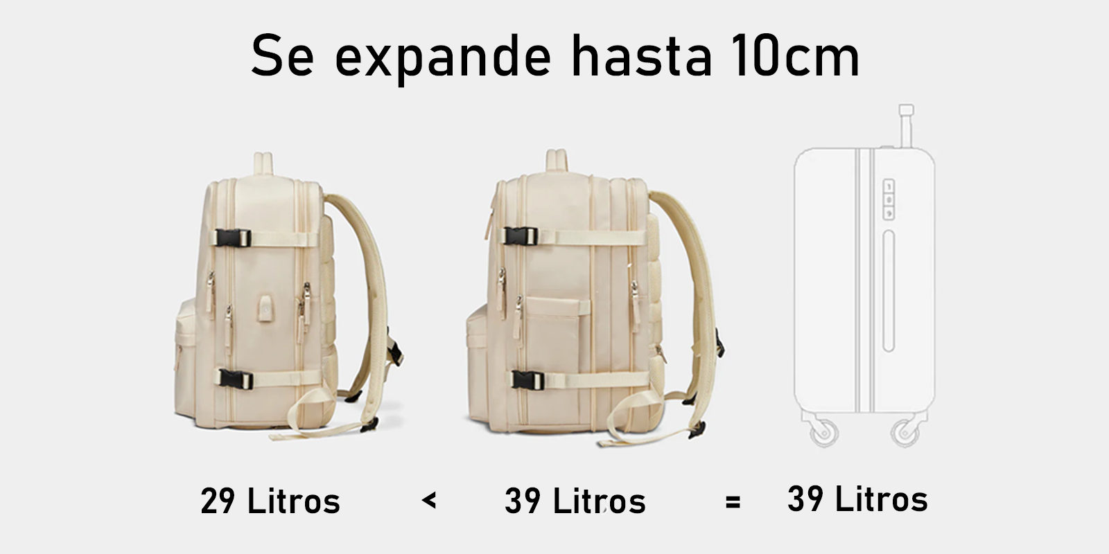 - Diseño expandible de 29 Litros a 39 Litros.