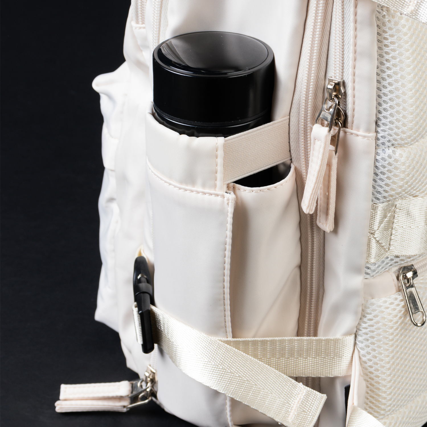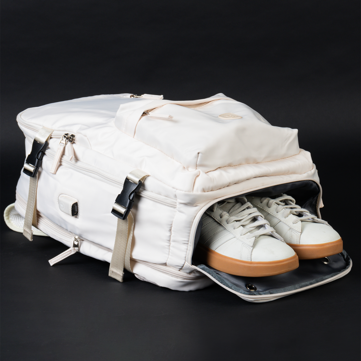 - Compartimiento separado para zapatillas y botella de agua