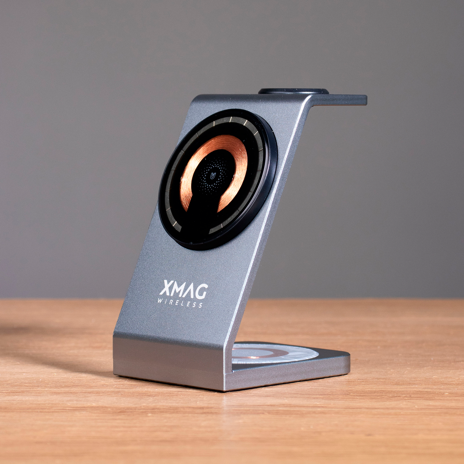 PowerBase establece un nuevo estándar para la carga de múltiples dispositivos. Con un diseño minimalista y un acabado con bordes atrevidos. El Power Base te permite cargar hasta tres dispositivos simultáneamente: tu teléfono inteligente, Apple Watch y AirPods.
